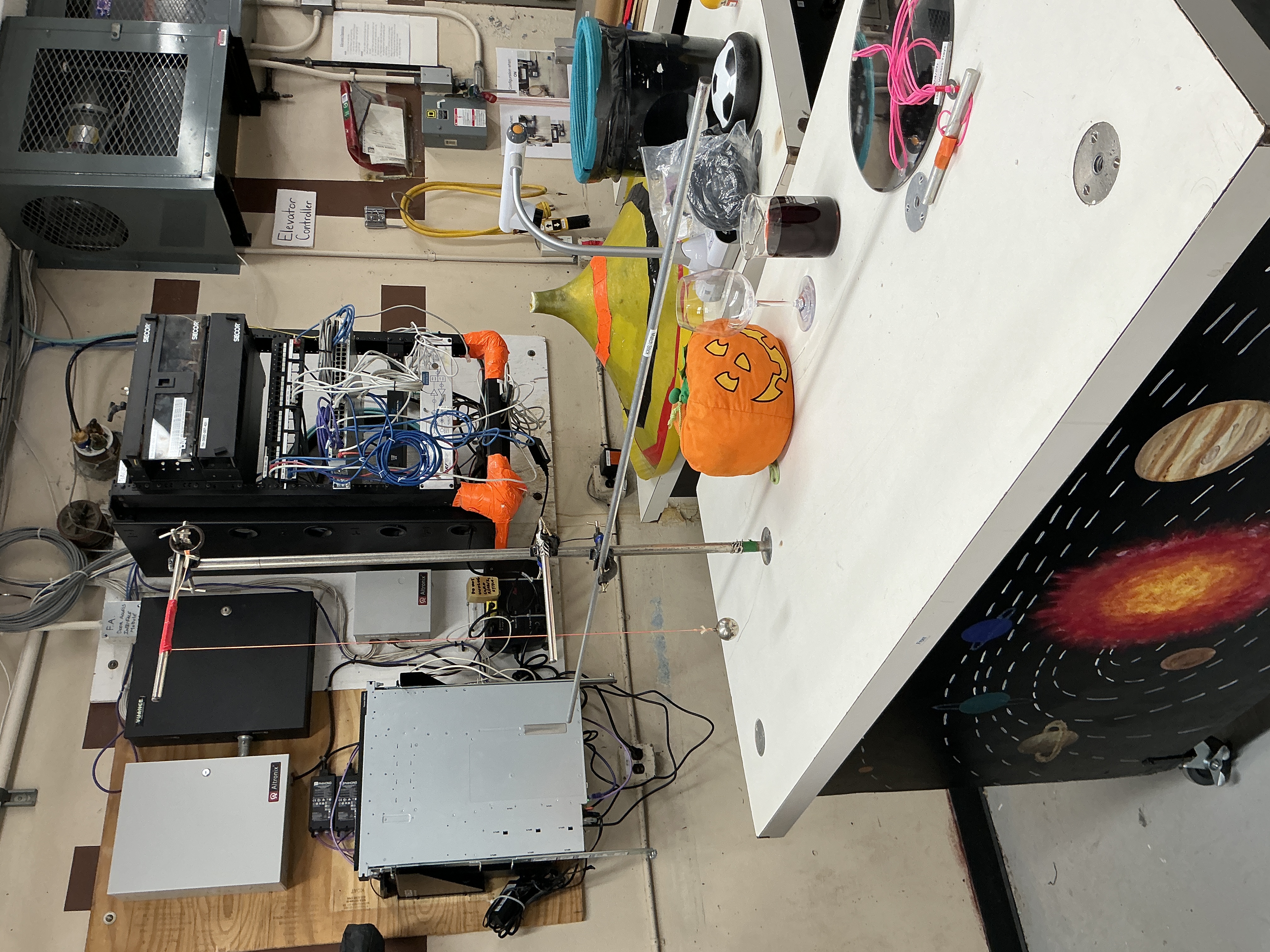 Description: Using a pendulum and rod configuration we demonstrate conservation of energy. The pendulum begins at a certain height and is released. The string collides with a rod and swings to the same height it was released.