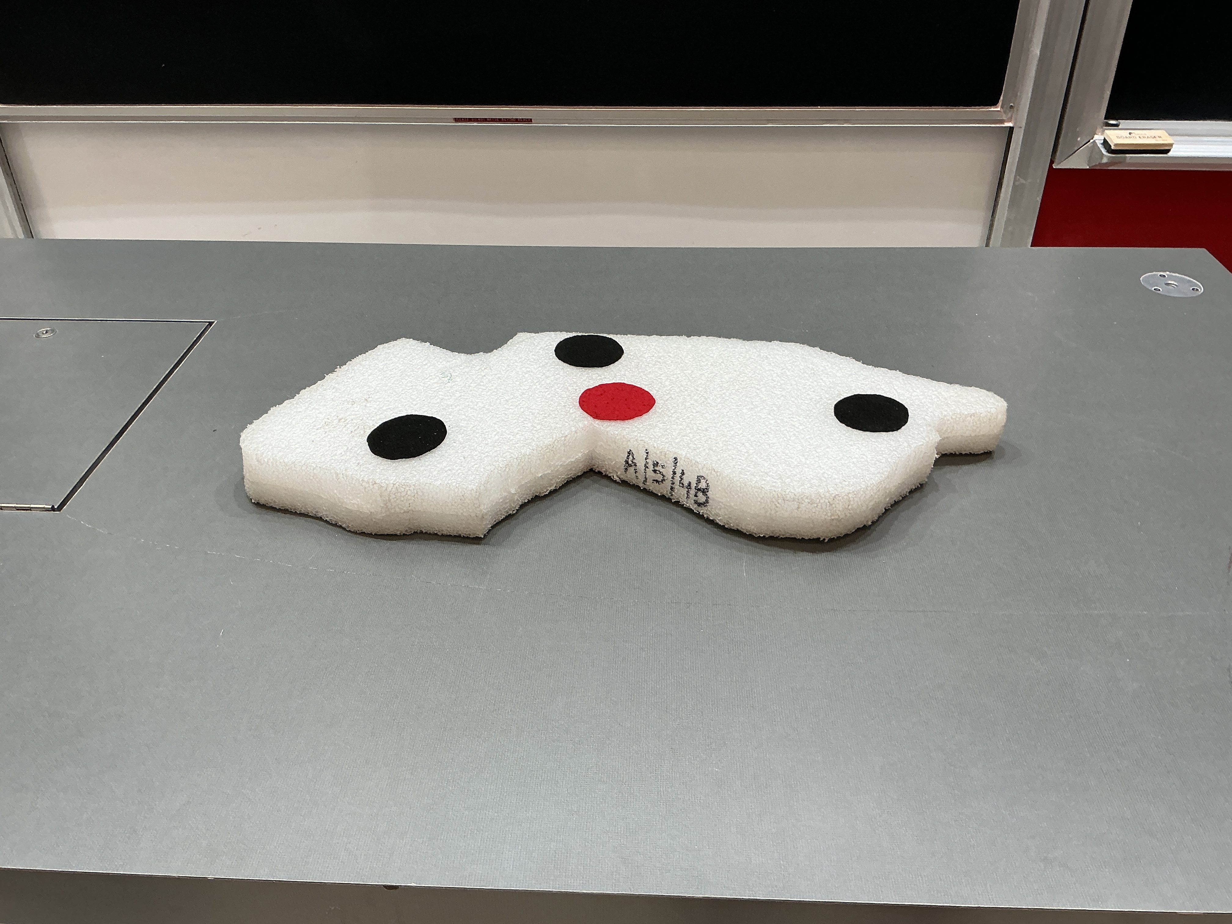 Description: Center of mass is explained using an irregular shape (New Jersey). Thrown in a parabolic path, center of mass is represented by a dot (Trenton) on the cut-out and will follow parabolic path while rest of shape spins around it.