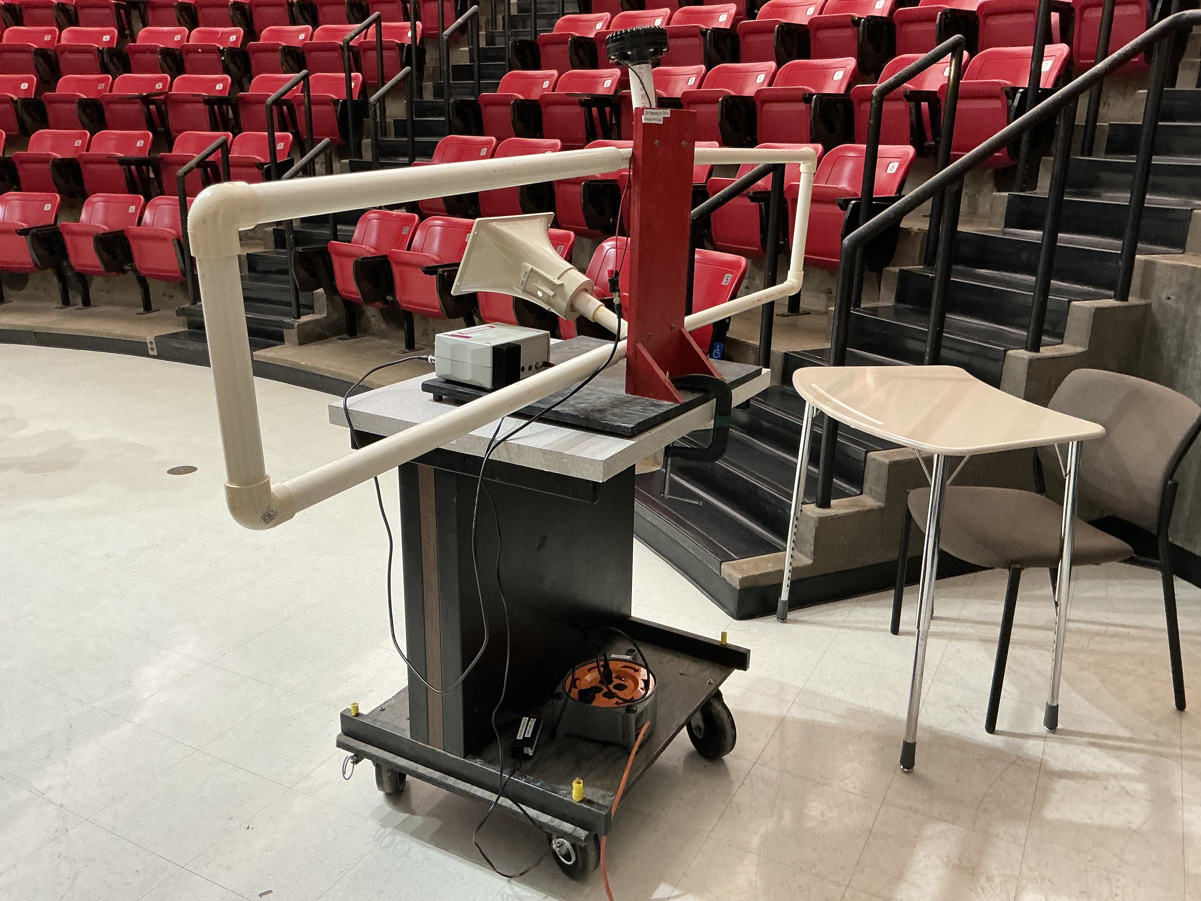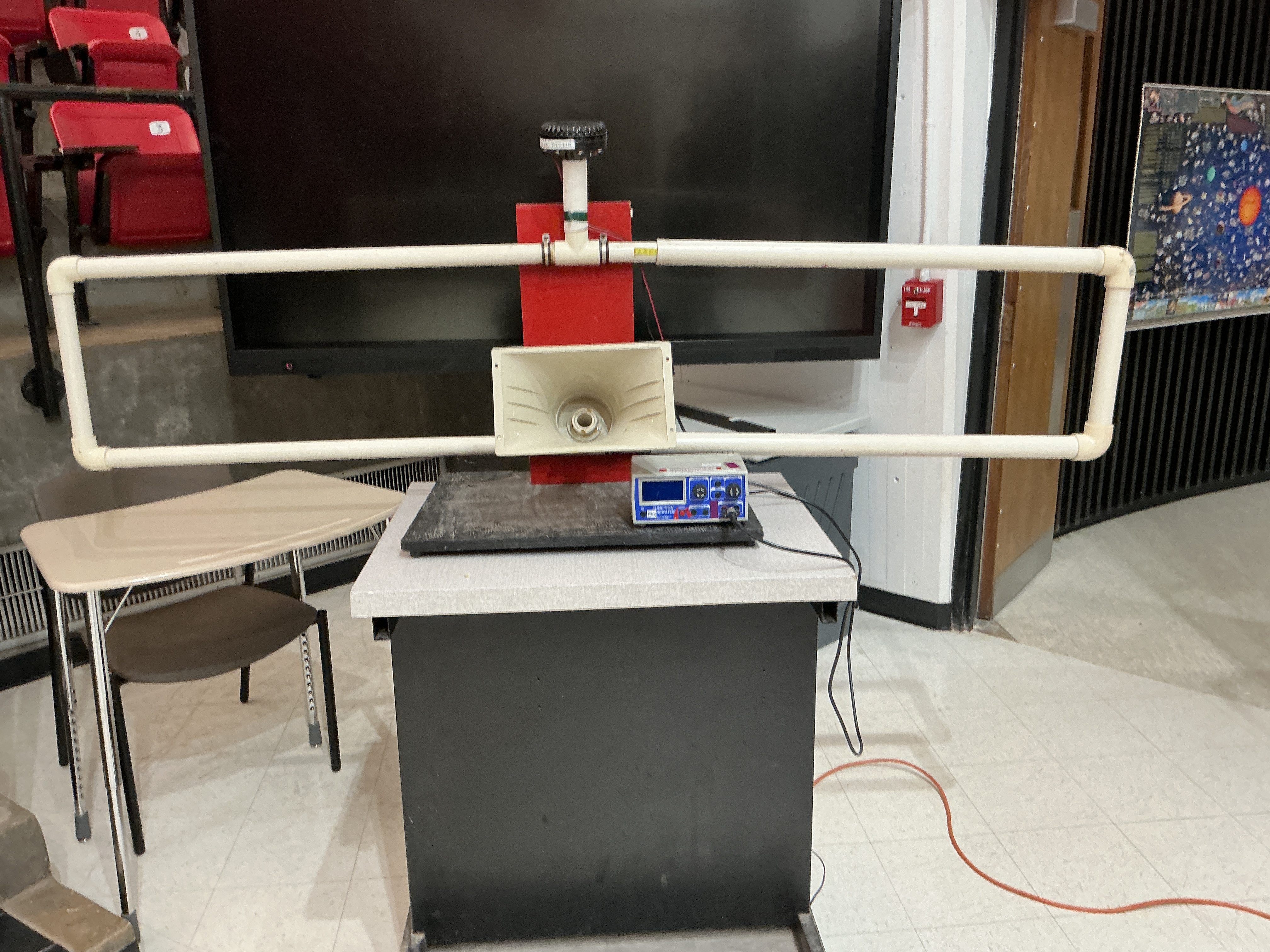 Description: A speaker drives two tubes, one variable, one constant, that come together into a common horn